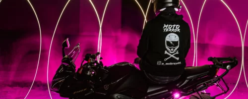 Sesja plenerowa z Patrykiem, motocyklem i racami dymnymi